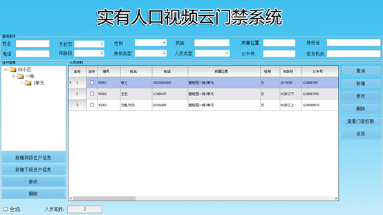 對小區(qū)不同人員類型進行在線實時統(tǒng)計和管理