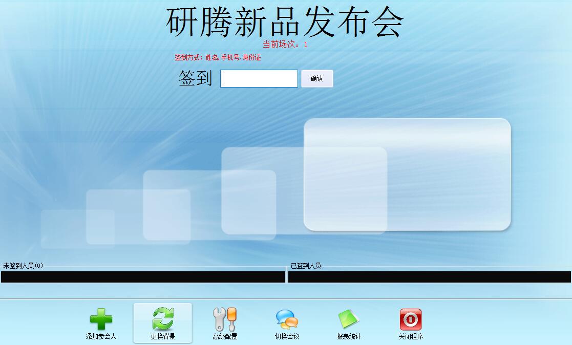 研騰會(huì)議簽到管理系統(tǒng)是一款智能化會(huì)議管理系統(tǒng),軟件分為簽到端和會(huì)議管理端,可用于大型會(huì)議,展會(huì),支持指紋簽到,二維簽到,身份證簽到,IC卡簽到,旨在為會(huì)議、展會(huì)、活動(dòng)等出現(xiàn)的問(wèn)題提供一種解決方案,比如人員管理亂,通知下發(fā)不全面,資料信息不全面,參會(huì)不及時(shí),沒(méi)有憑證,等等各種問(wèn)題。