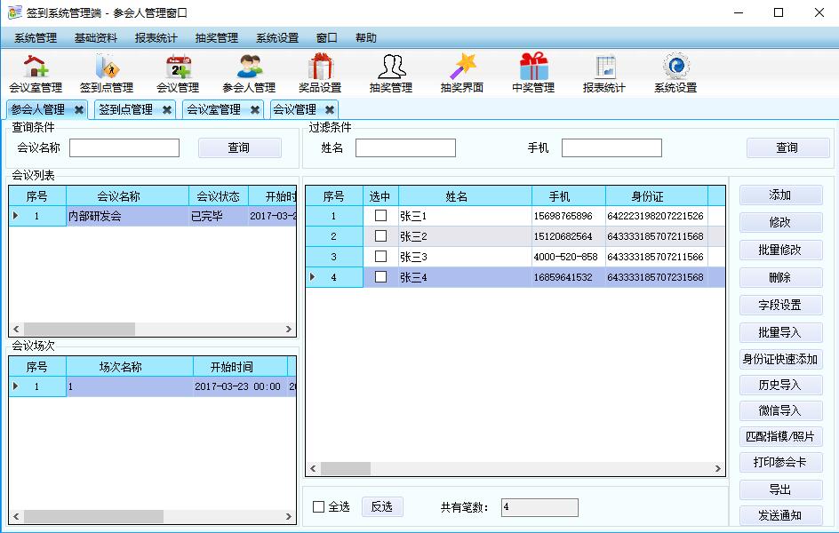 2、 參會(huì)人員信息支持表格批量導(dǎo)入及身份證閱讀器直接添加。